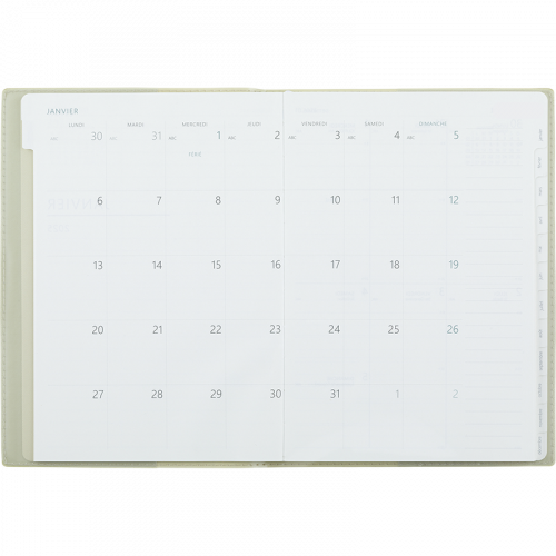 Féroé, c'est l'agenda 2026 incontournable pour les personnes désireuses d'avoir une vision globale du mois en cours, et qui aiment aussi prendre des notes ou lister les choses à faire dans la semaine. Les petits plus : les deux signets marque-pages assortis ainsi que des onglets mois par mois pour s'y retrouver plus facilement dans ce joli semainier.