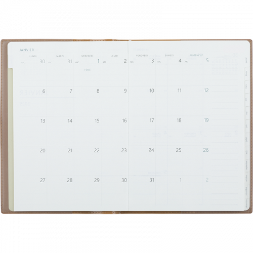 Tranche naturelle avec découpe 13 onglets pour 13 mois.