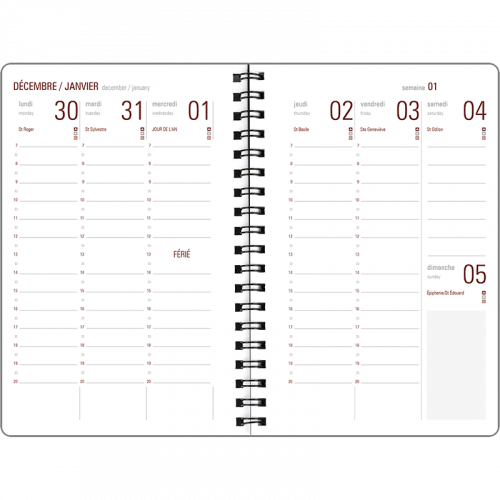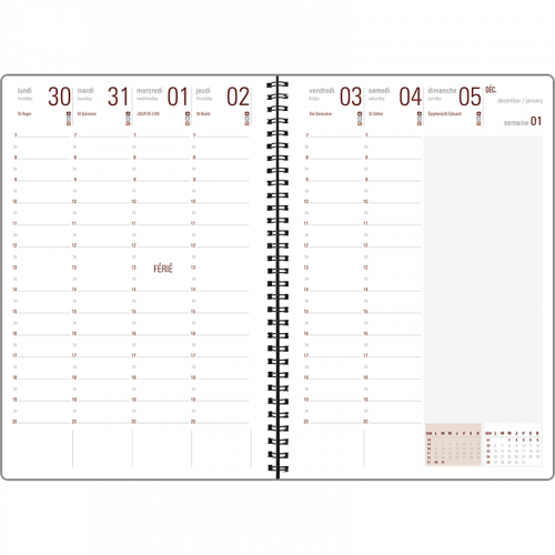 Localiser un magasinAgenda 2026 semainier rigide, couverture imprimée et pelliculage mat