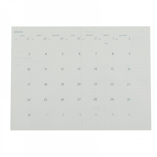 La semaine sur 1 page et une page de note, impression 2 couleurs sur papier ivoire 80g.
