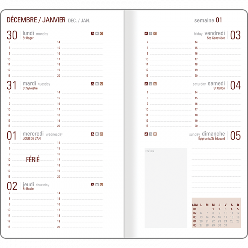 Semainier broché international 128 pages, pages répertoire, atlas.