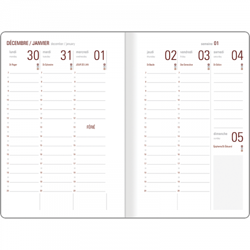Semainier broché international 128 pages, pages répertoire, atlas.
