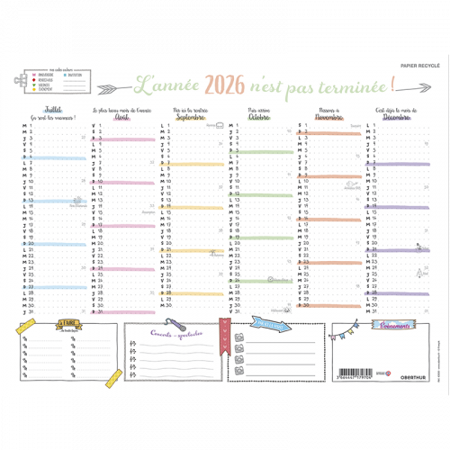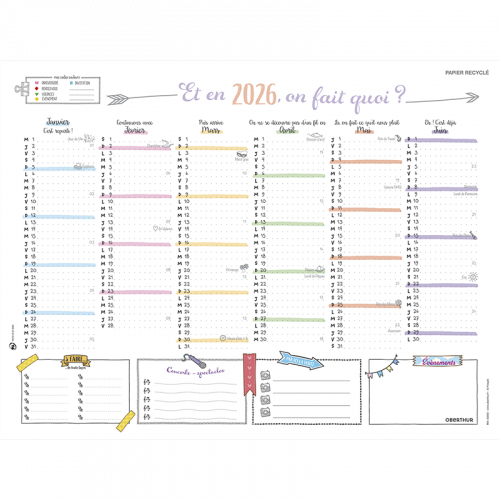 Localiser un magasinCalendrier 6 mois par face (Janvier à Juin et Juillet à Décembre 2026), fabriqué en France.