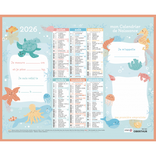 Localiser un magasinL'arrivée d'un nouvel enfant est toujours un événement magique ! Alors, pensez à acheter le calendrier de son année de naissance. Vous pourrez lui offrir plus tard quand il sera parent à son tour ou le garder en souvenir. Quoi qu'il en soit, l'émotion sera au rendez-vous lorsque vous regarderez sa photo, ses petites empreintes de pieds et de mains puisque des espaces ont été conçus spécialement.