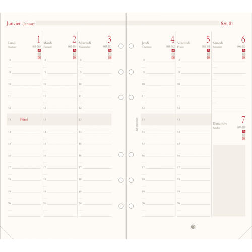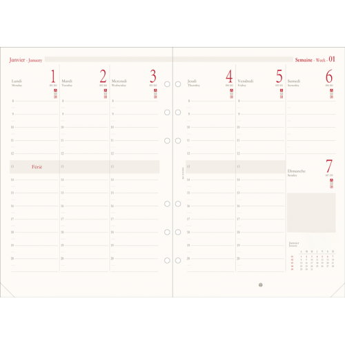 Livré avec un intérieur 2026 imprimé rouge et gris sur papier ivoire, la semaine sur 2 pages, coins perforés.