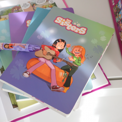 Retrouvez tout l’esprit espiègle des Sisters à travers notre ligne de carnets aux décors variés. Chaque modèle raconte une scène différente : un selfie improvisé, un moment guitare, une bataille de polochons ou une complicité partagée entre sœurs.