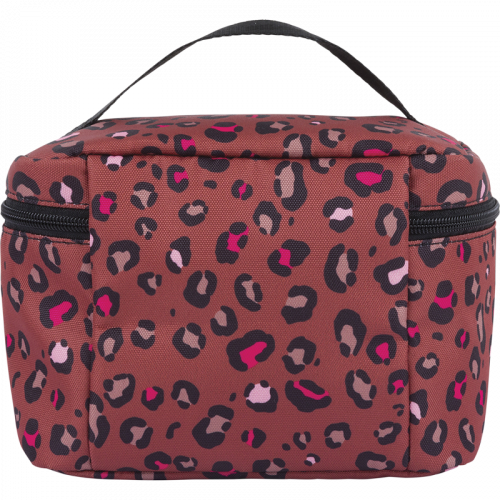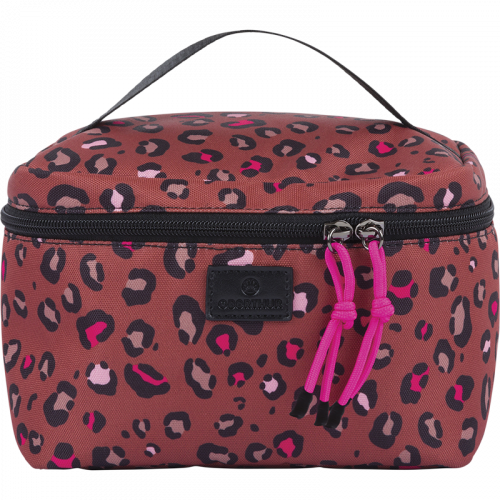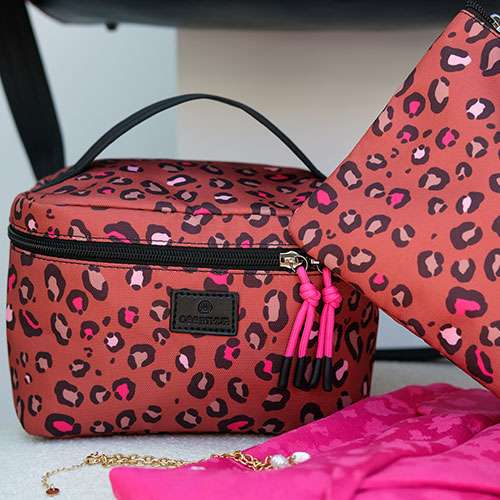 Emportez vos essentiels beauté avec élégance grâce à notre vanity Bahia au motif léopard exclusif revisité dans des tons de brun, de noir et de rose fuchsia. Souple et léger, il s’adapte facilement à tous vos besoins tout en offrant une belle capacité de rangement. À l’intérieur, deux poches plaquées permettent d’organiser vos produits de maquillage, soins ou accessoires avec praticité. Idéal pour les voyages comme pour apporter une touche colorée à votre salle de bain, ce vanity allie style et fonctionnalité avec brio.