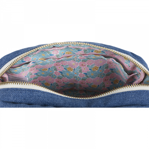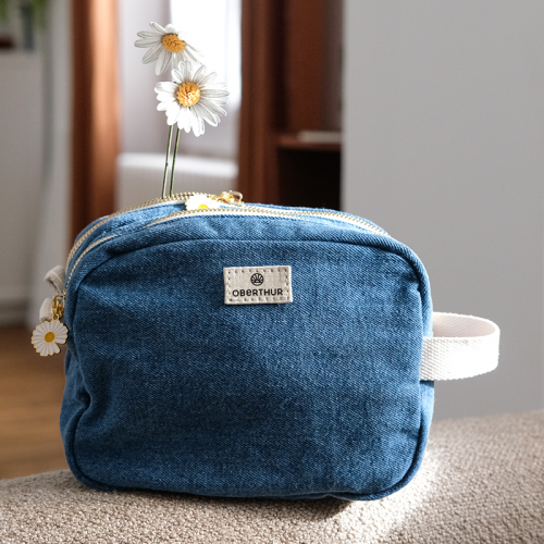 Localiser un magasinPochette multi-usages en denim 100% recyclé à l'extérieur.