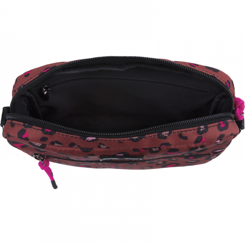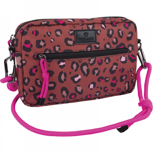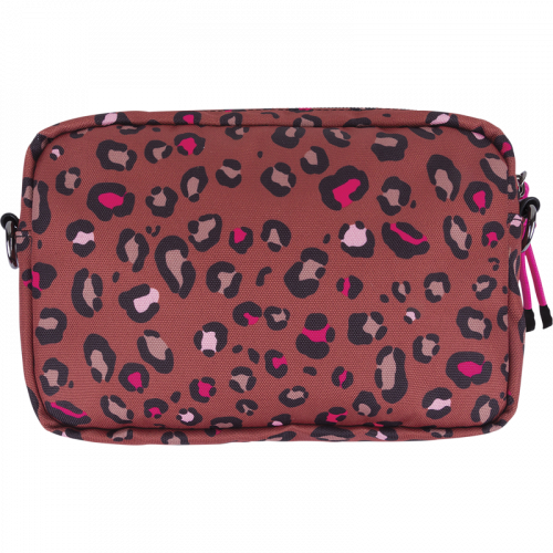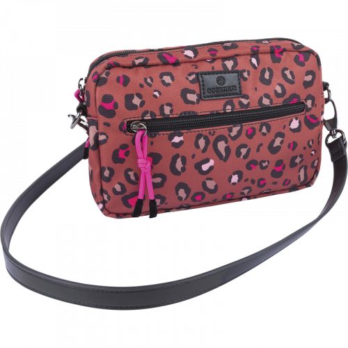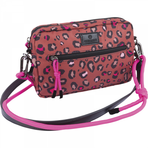 Affirmez votre style avec notre sac à bandoulière Bahia au motif léopard exclusif revisité dans des tons de brun, de noir et de rose fuchsia.