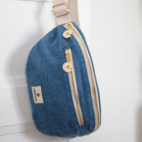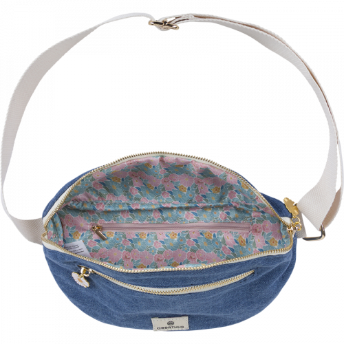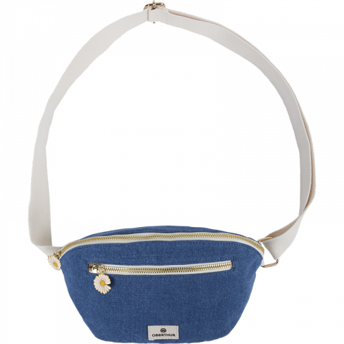 Localiser un magasinSac banane en denim 100% recyclé à l'extérieur, avec sa bandoulière ajustable.