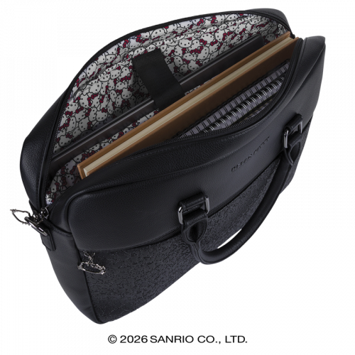 Localiser un magasinSacoche ordinateur en mix-matière : PU lisse avec motif Hello Kitty embossé et PU grainé.