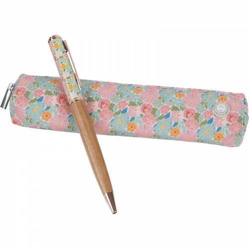 Un twist, et l’inspiration prend forme. Le stylo bille Bahia mêle la finesse d’un motif floral batik à l’élégance naturelle du bois, décliné en rose ou en bleu. Bois de rose ou de noyer, attributs rose cuivré ou chrome brillant : chaque détail allie style et praticité. Un compagnon chic pour écrire au quotidien, en toute légèreté.
