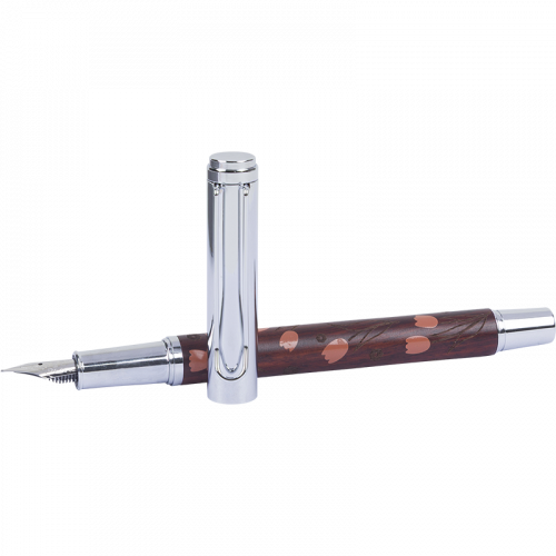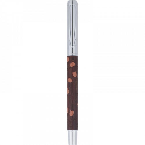 Corps avec motif floral gravé et sérigraphié en 2 couleurs (lavande ou rouge), en bois d'érable et capuchon en métal chromé