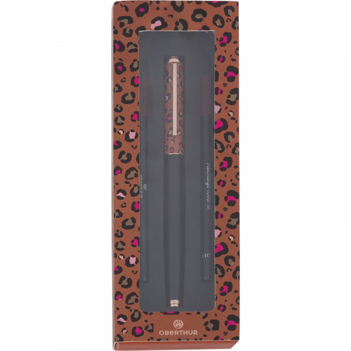 Le motif léopard s’impose avec style dans vos prises de notes ! Notre stylo roller Bahia associe un design original à une écriture fluide et agréable. Son capuchon reprend le motif léopard exclusif de la collection, tandis que son corps en bois d’ébène apporte une touche de sobriété et d’élégance. Facile à prendre en main, il offre un confort d’écriture idéal pour un usage quotidien.